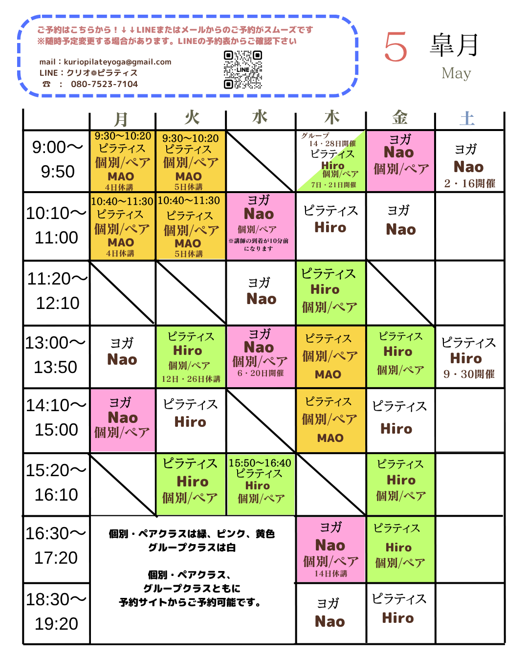 🩷ピンク枠…ヨガ/NAO個別・ペアレッスン